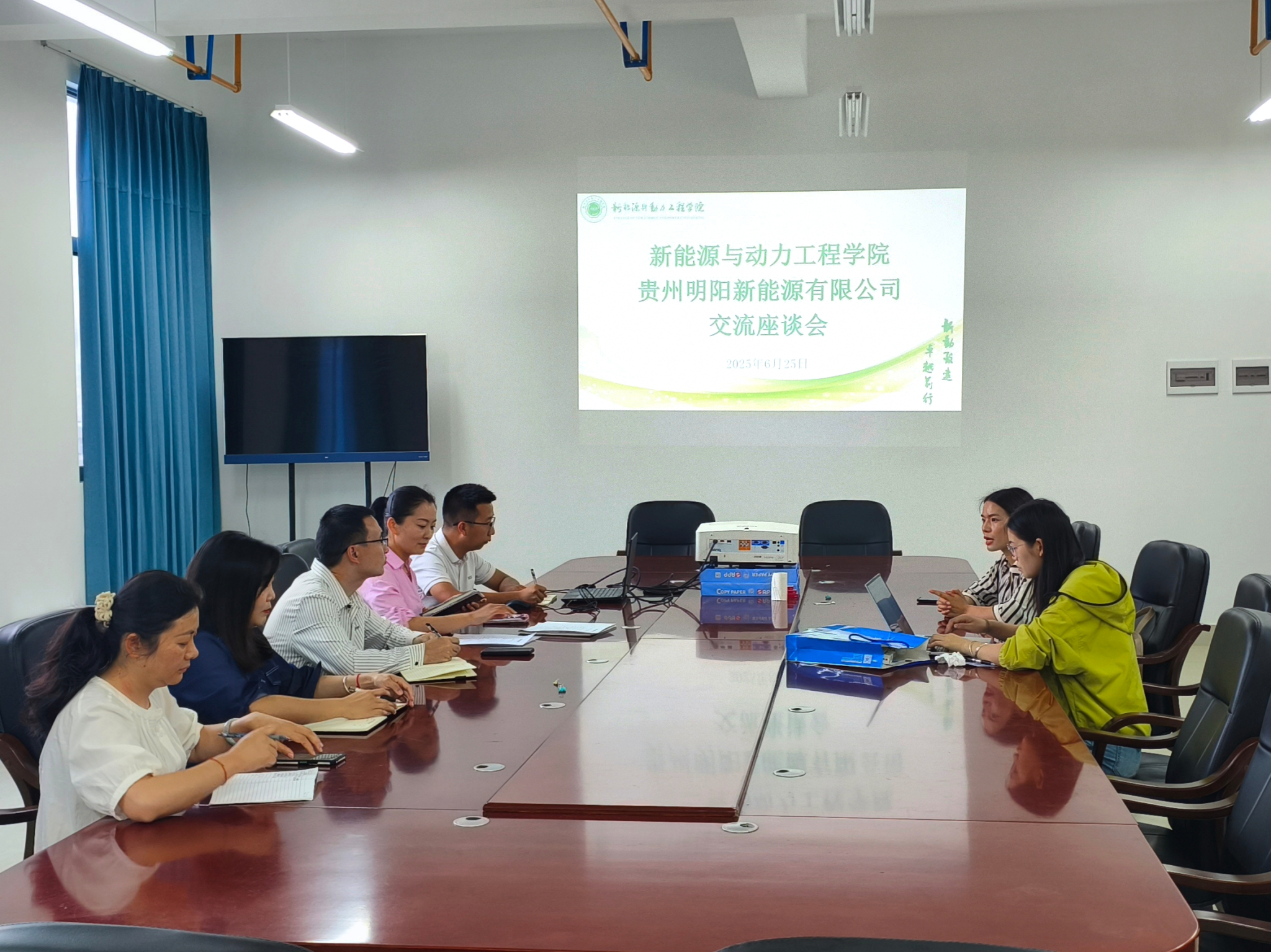 (图文/杨苏剑)为深化校企合作,推动新能源领域产教融合与协同发展,6月25日,新能源与动力工程学院与贵州明阳新能源有限公司在学院会议室举行交流座谈会。学院党政领导、教师代表和公司负责人开展深度交流。