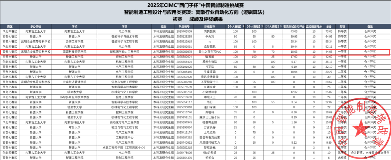 (图文/孙德生)近日,2025年“西门子杯”中国智能制造挑战赛(CIMC)初赛结果揭晓,新能源与动力工程学院学子凭借扎实的专业积淀、卓越的创新思维与高效的团队协作,在激烈角逐中脱颖而出,斩获西部六赛区一等奖,成功晋级全国总决赛。