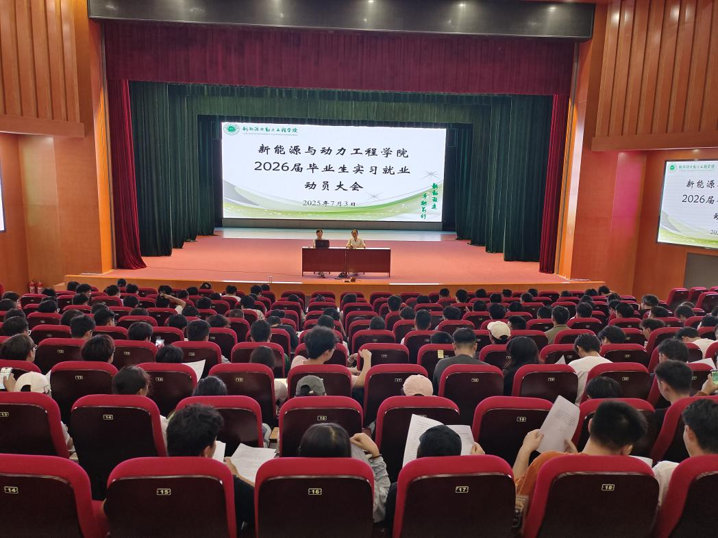 (图/邓明康 文/张海芳)为提升能源与动力工程专业学生实习就业质量,规范实习管理,引导学生树立正确就业观念,7月3日下午,学院在综合会堂组织召开了2026届毕业生实习就业动员大会。会议由学院党总支副书记(主持工作)魏正子主持,2026届毕业班班主任及全体学生参会。